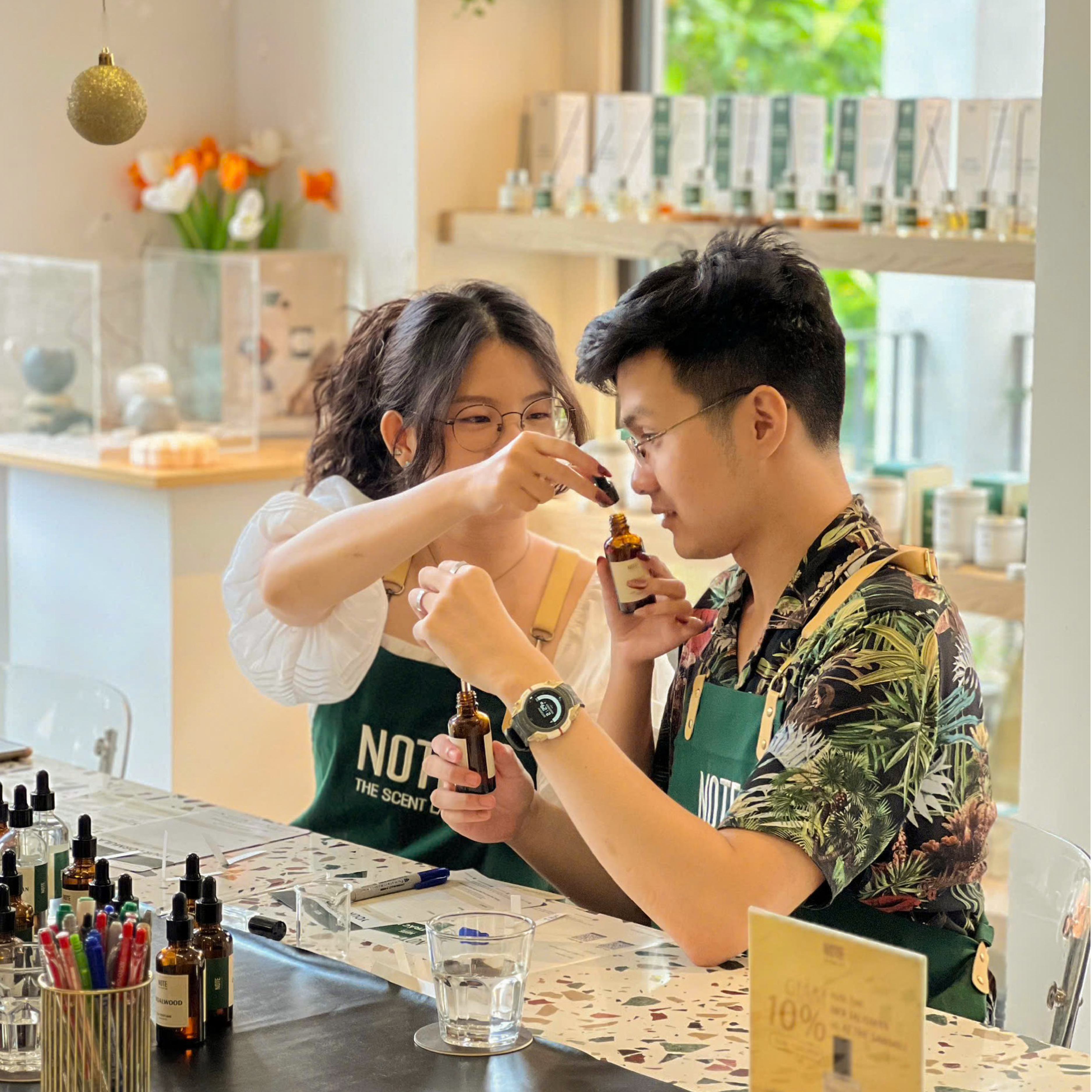 NOTE – The Scent Lab từ năm 2019 được biết đến là workshop mùi hương mang phong cách “phòng Lab” đặc trưng. Với nhiều năm kinh nghiệm trong lĩnh vực mùi hương, NOTE đã mang trải nghiệm làm nước hoa và nến thơm chuyên nghiệp đến nhiều đối tượng khách hàng, thu hút các khách trong nước đến khách ngoại quốc. Là đơn vị thường xuyên được xuất hiện trên các tạp chí danh tiếng như Harper’s Bazaar Vietnam, Heritage Vietnam Airlines, Kilala, Workshop của NOTE luôn được các tập đoàn lớn ưu ái và chọn để làm hoạt động kết nối nhân sự vào những dịp đặc biệt như Giáng Sinh.