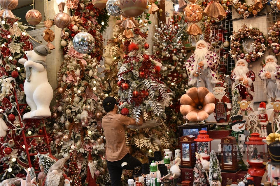 Nhắc đến địa điểm vui chơi vào các dịp lễ lớn ở Hà Nội thì không thể bỏ qua Phố Hàng Mã – con phố được mệnh danh là “thủ phủ” của đồ trang trí và đứng “top đầu” các địa điểm vui chơi lễ hội. Giáng Sinh năm nay, cả tuyến Phố Hàng Mã từ sớm đã khoác lên mình lớp áo lễ hội, kết đan từ những vật phẩm trang trí được bày bán từ các gian hàng như những quả châu, vòng lá, cây thông Noel, dây nơ, tuần lộc, ông già tuyết,…